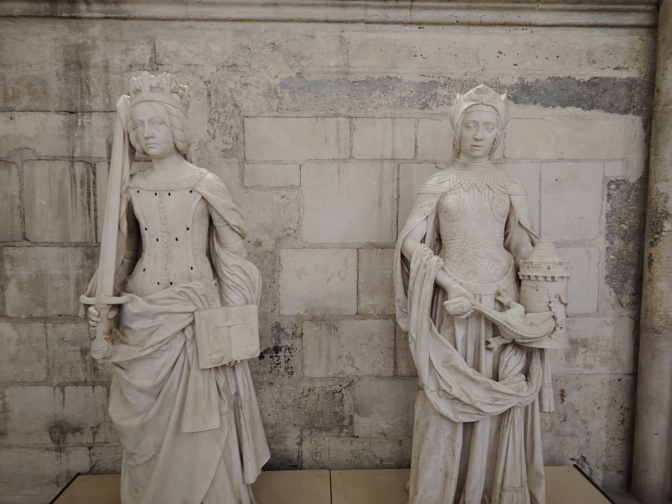 Statues of virtues adorn the four corners of the tomb.