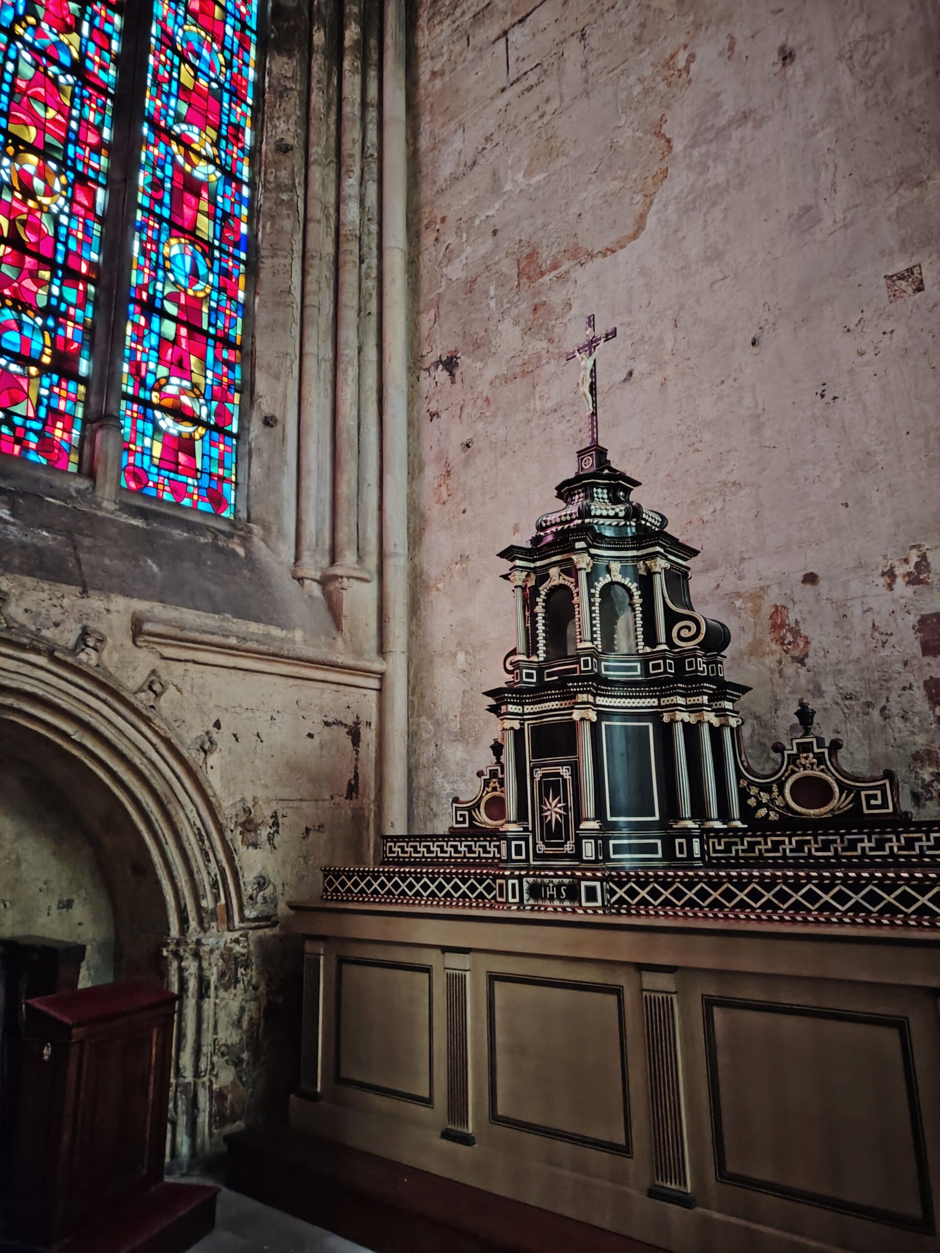 Altar of Saint Martin in the north transept. This altarpiece dates from 1828, while the statues are from the 17th century. In the center is Victor Schnetz’s famous painting, “La Charité d’Amiens” (The Charity of Amiens).