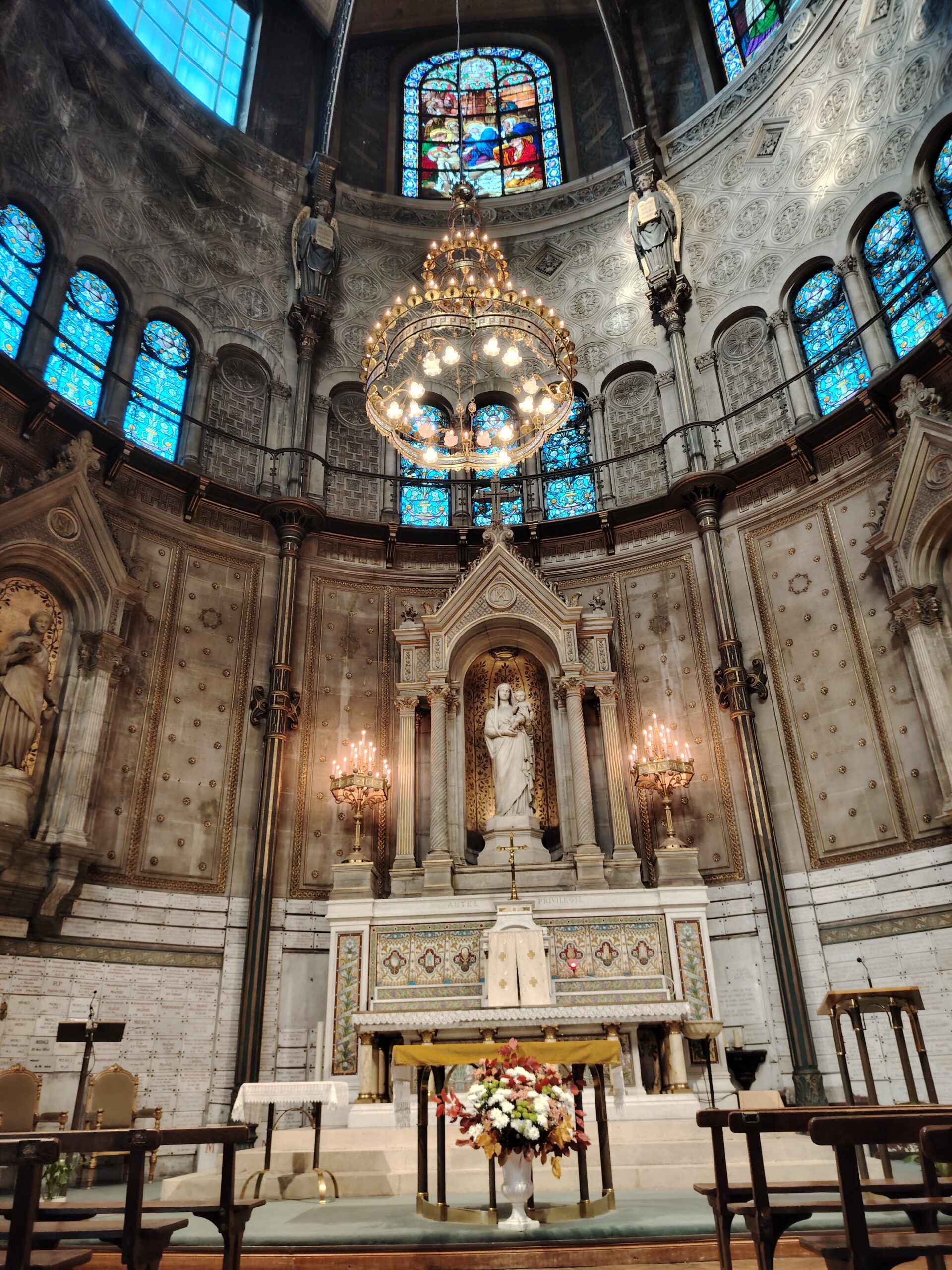 Church of Saint Augustin Leave a Comment / Uncategorized / By admin The Saint-Augustin church is located in the 8th arrondissement of Paris. The closest métro station is Saint-Augustin It is built between 1860 and 1871. The nave and the choir. The nave and the organ. The great organ of the church is from 1868. The pulpite The choir. The dome,choir, high altar and ciborium. . Statue of Saint Augustinus. Chapel of the Virgin. Chapel of the Virgin. The ciborium. The dome. The ciborium. Chapel of Saint-Joseph. Statue of Sainte Therese the child of Jesus. The Chapel of the Sacred Heart of Jesus with the organ. Baptisme The stained glass windows depict bishops and martyrs of the first centuries, and the cast iron columns are decorated with polychrome angels. Saint Jean Paul.