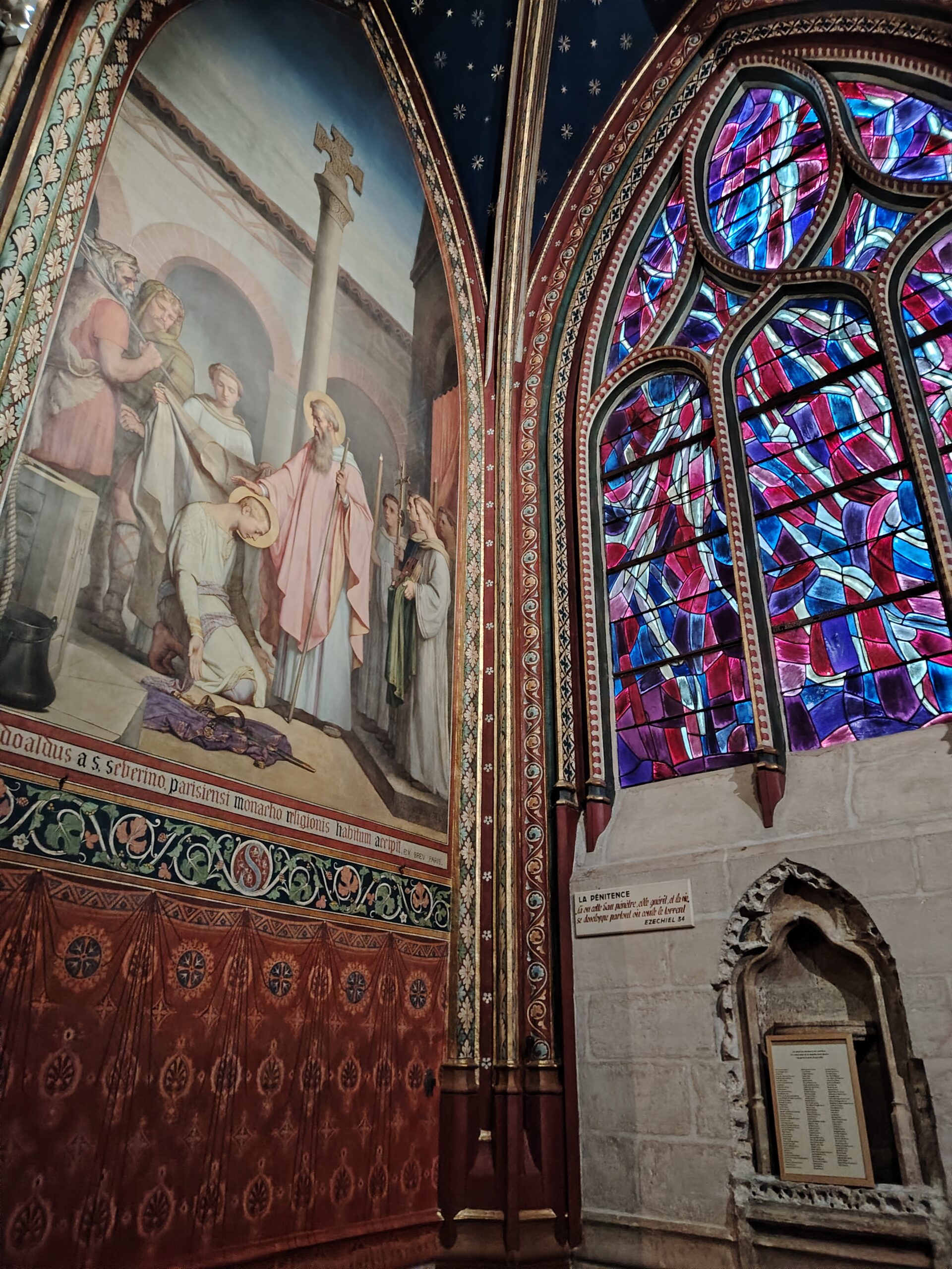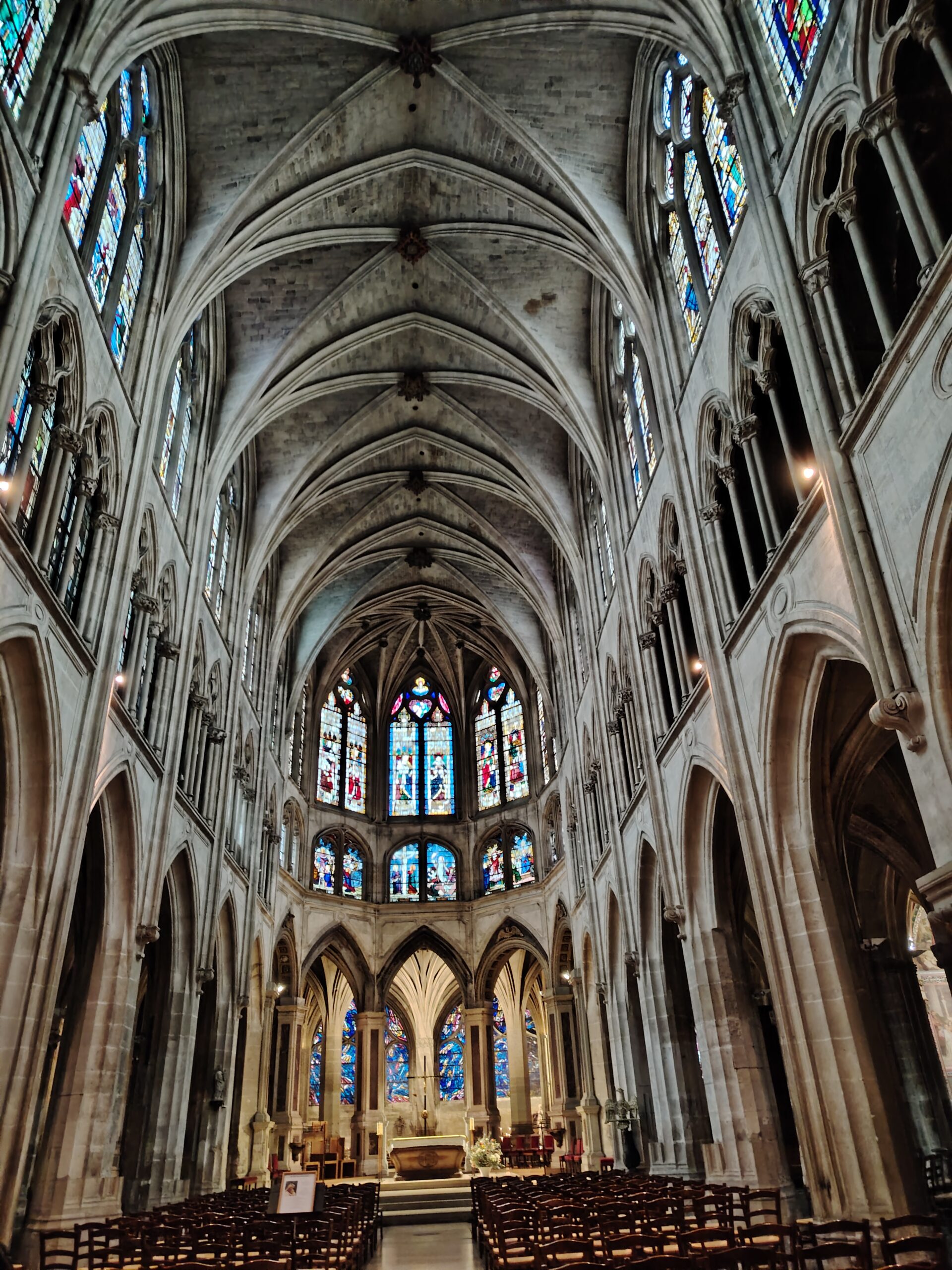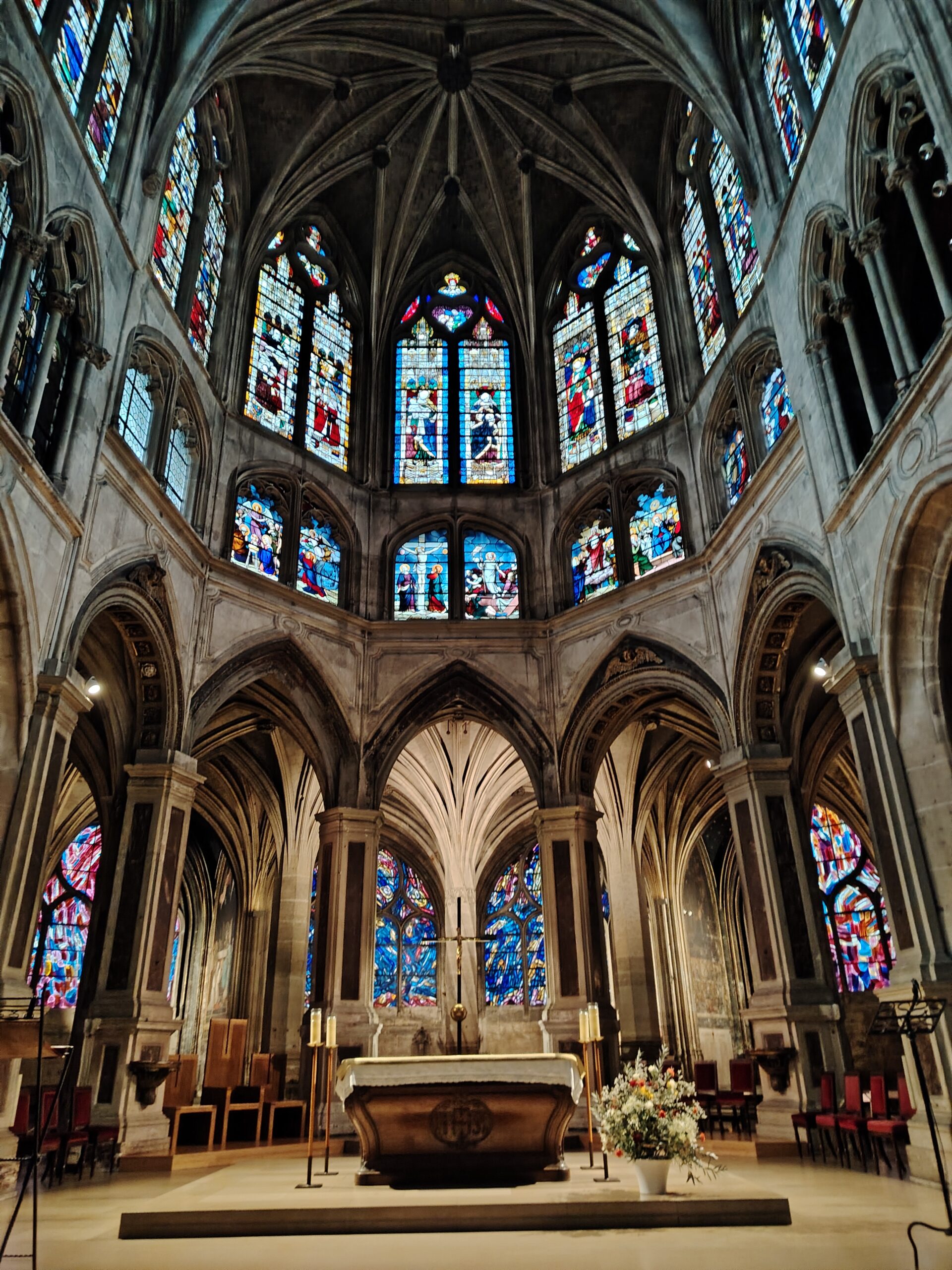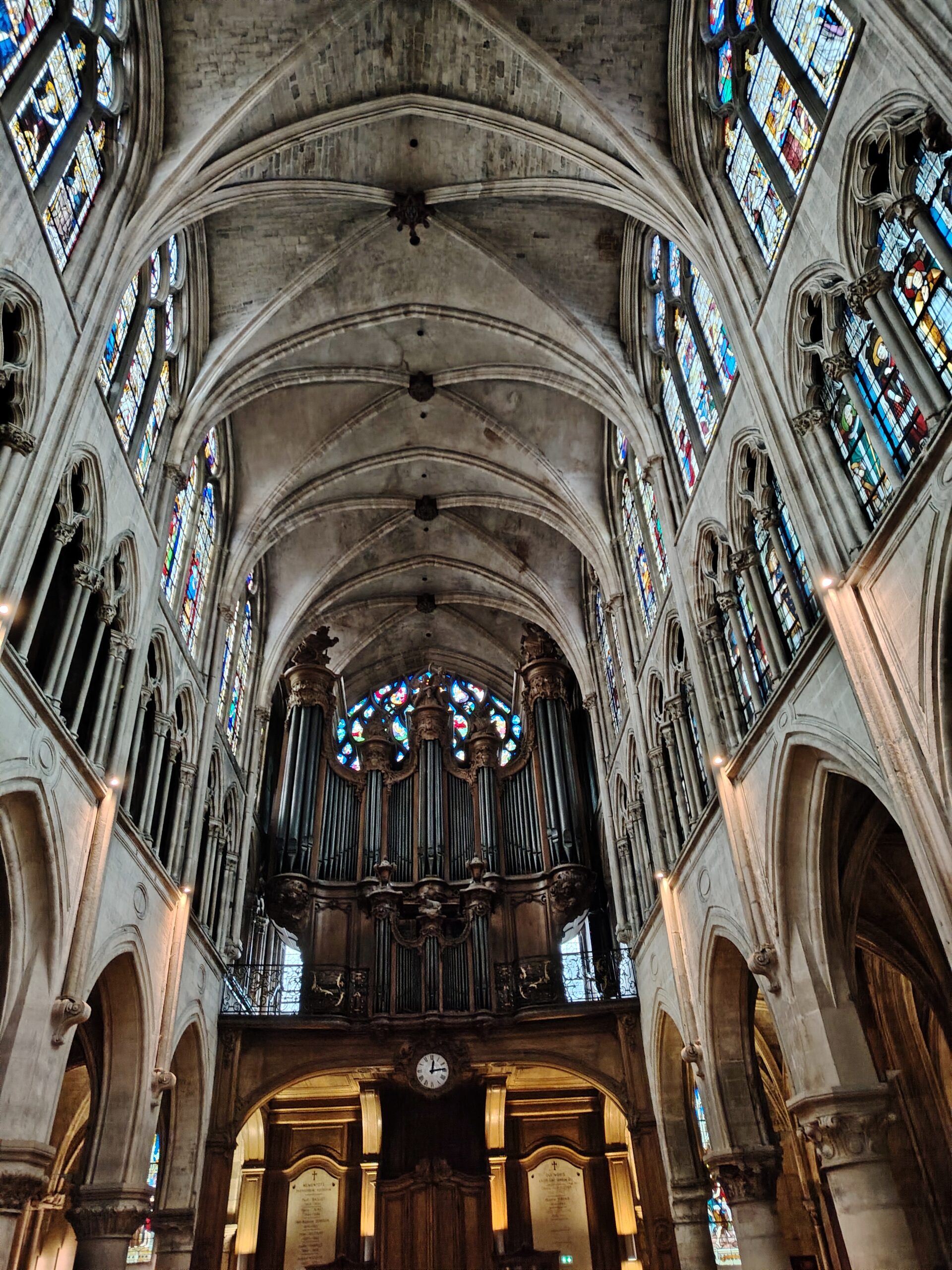 Church of Saint Séverin Leave a Comment / Uncategorized / By admin The Church of Saint-Séverin is located in the 5th arrondissement. The closest metro station are Saint Michel and Cluny La Sorbonne. Saint Michel ;Metro line 4 and RER B Cluny La Sorbonne; metro 10, RER B and RER C. The church was constructed beginning in 1230 and rebuilt and enlarged in the 15th to 17th centuries. The nave. The altar and the windows of the apse with the portraits of the Saints. The Grand Organ. . The Choir Organ. . . . Cloister and garden.Former Ossuary or Charnel House from the 15th century.