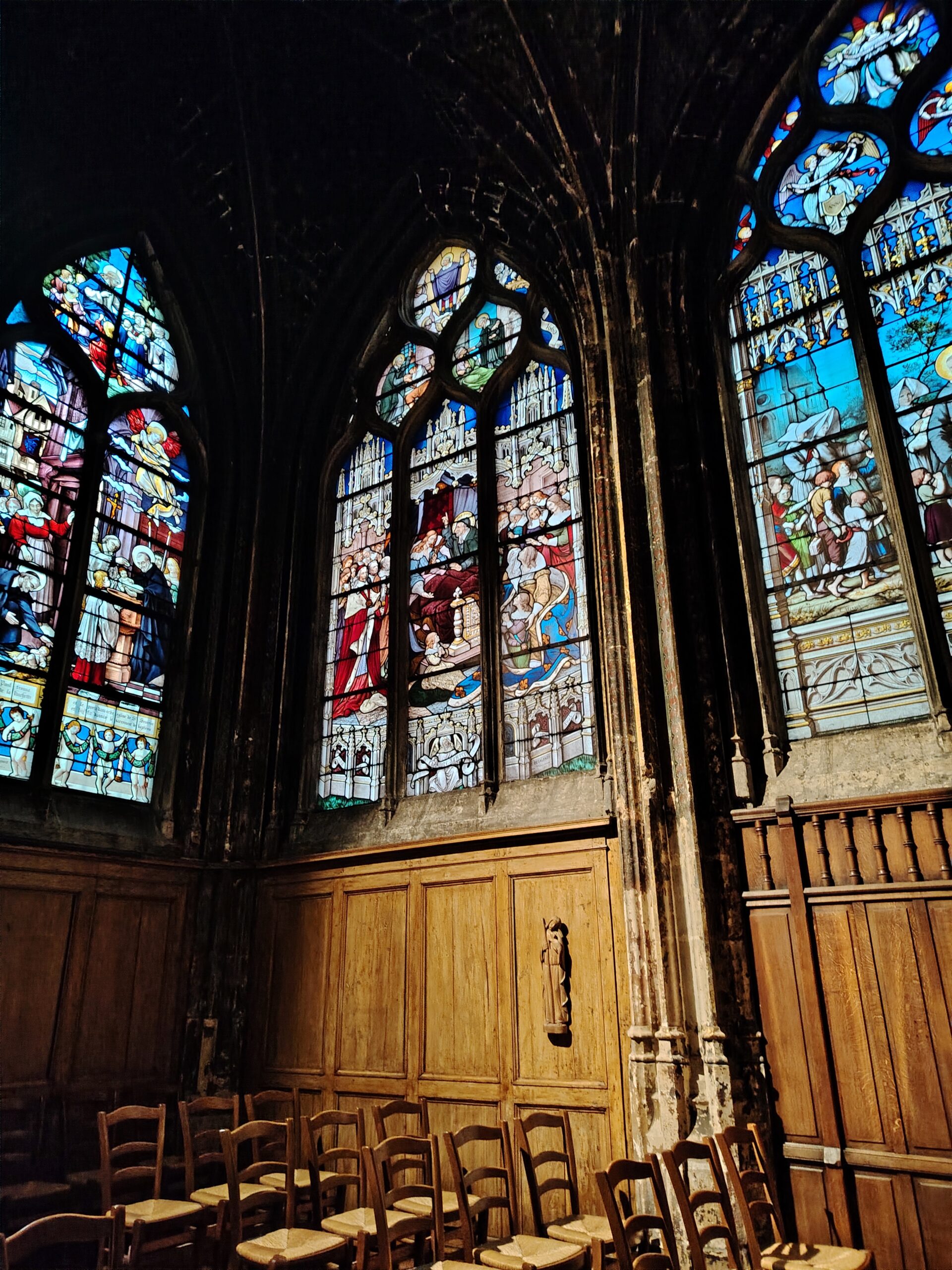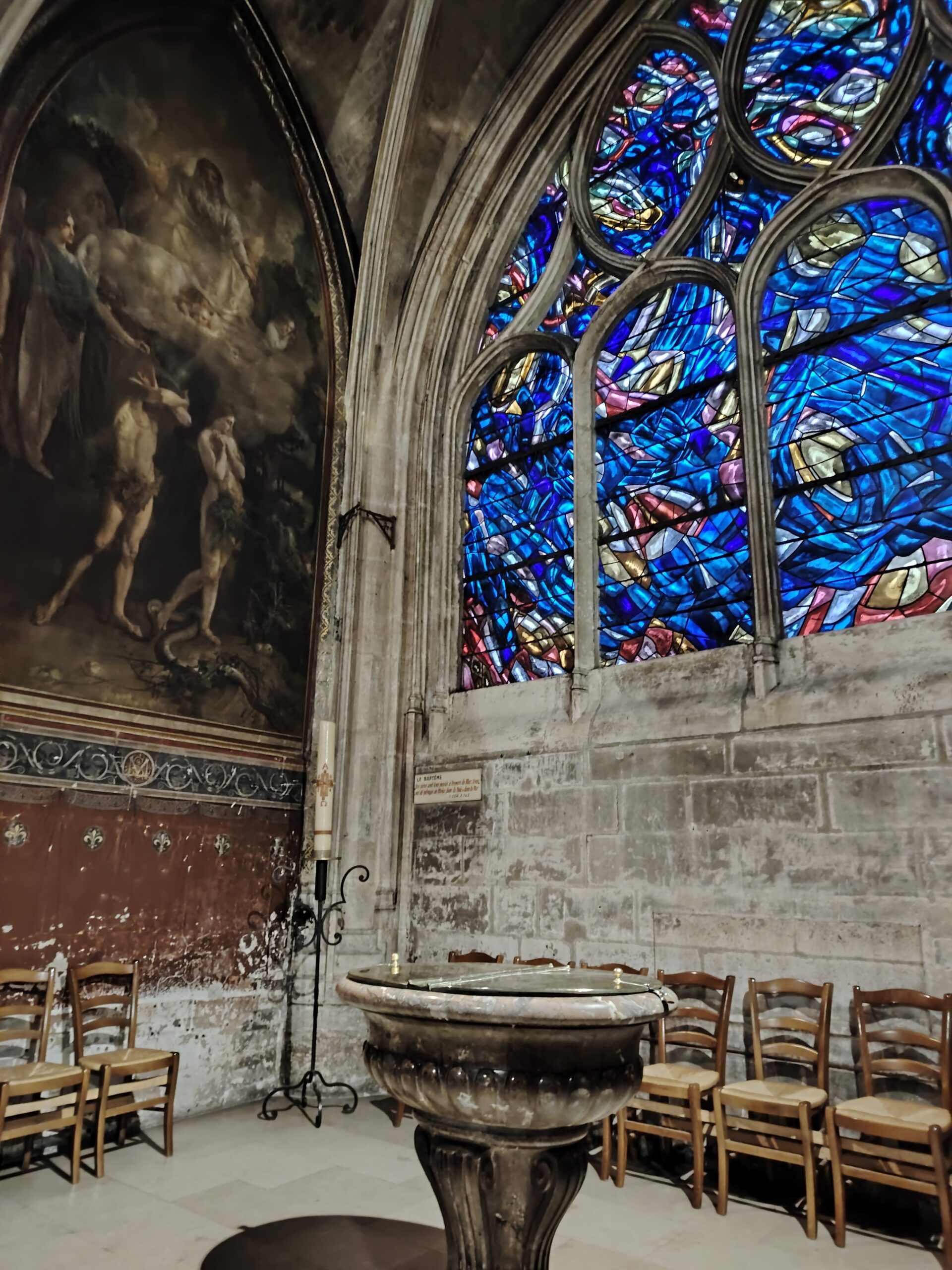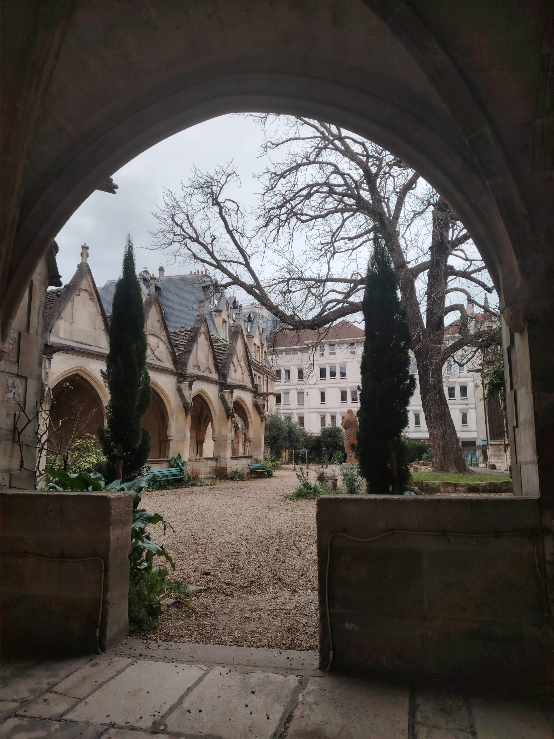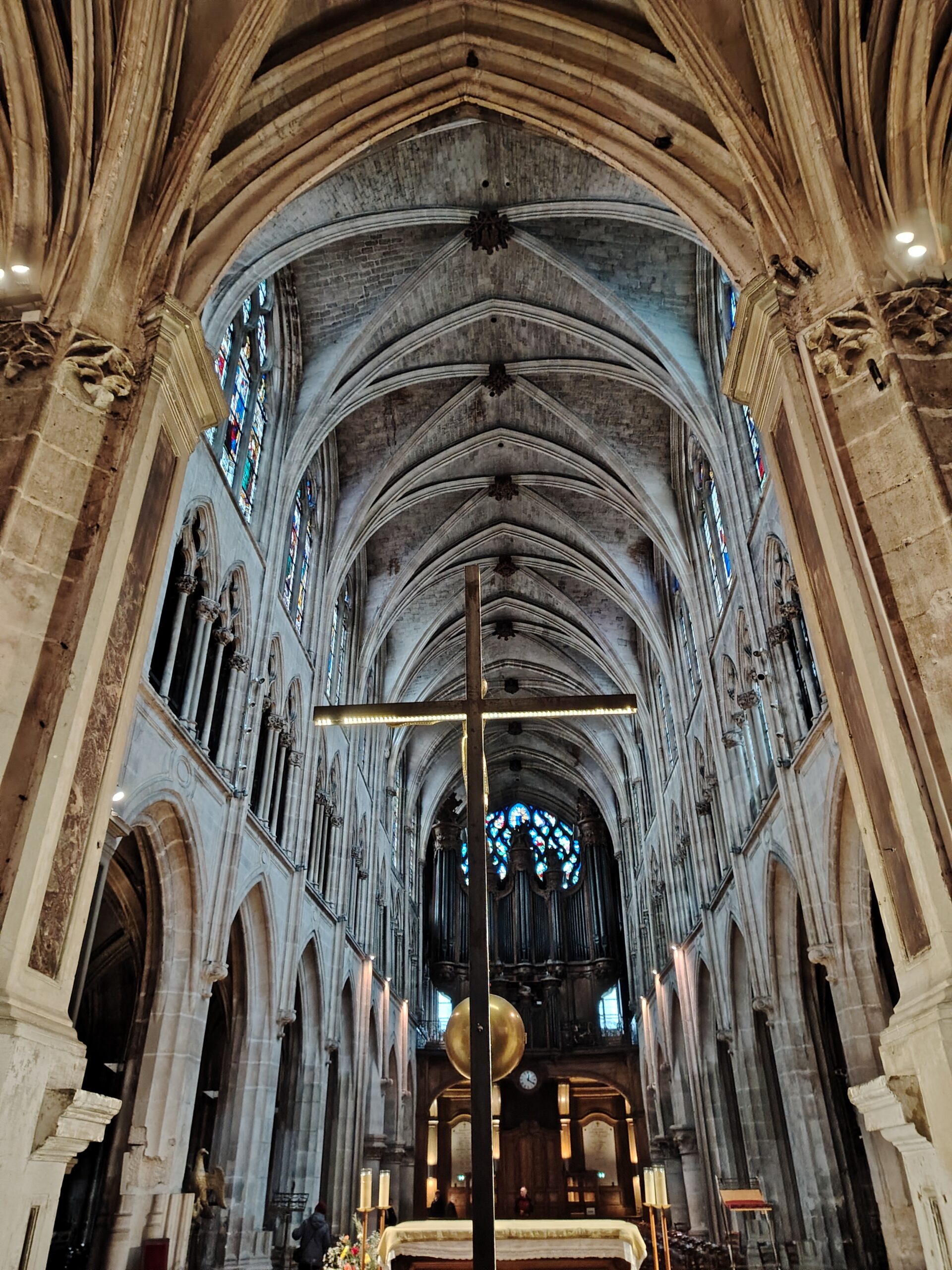 Church of Saint Séverin Leave a Comment / Uncategorized / By admin The Church of Saint-Séverin is located in the 5th arrondissement. The closest metro station are Saint Michel and Cluny La Sorbonne. Saint Michel ;Metro line 4 and RER B Cluny La Sorbonne; metro 10, RER B and RER C. The church was constructed beginning in 1230 and rebuilt and enlarged in the 15th to 17th centuries. The nave. The altar and the windows of the apse with the portraits of the Saints. The Grand Organ. . The Choir Organ. . . . Cloister and garden.Former Ossuary or Charnel House from the 15th century.
