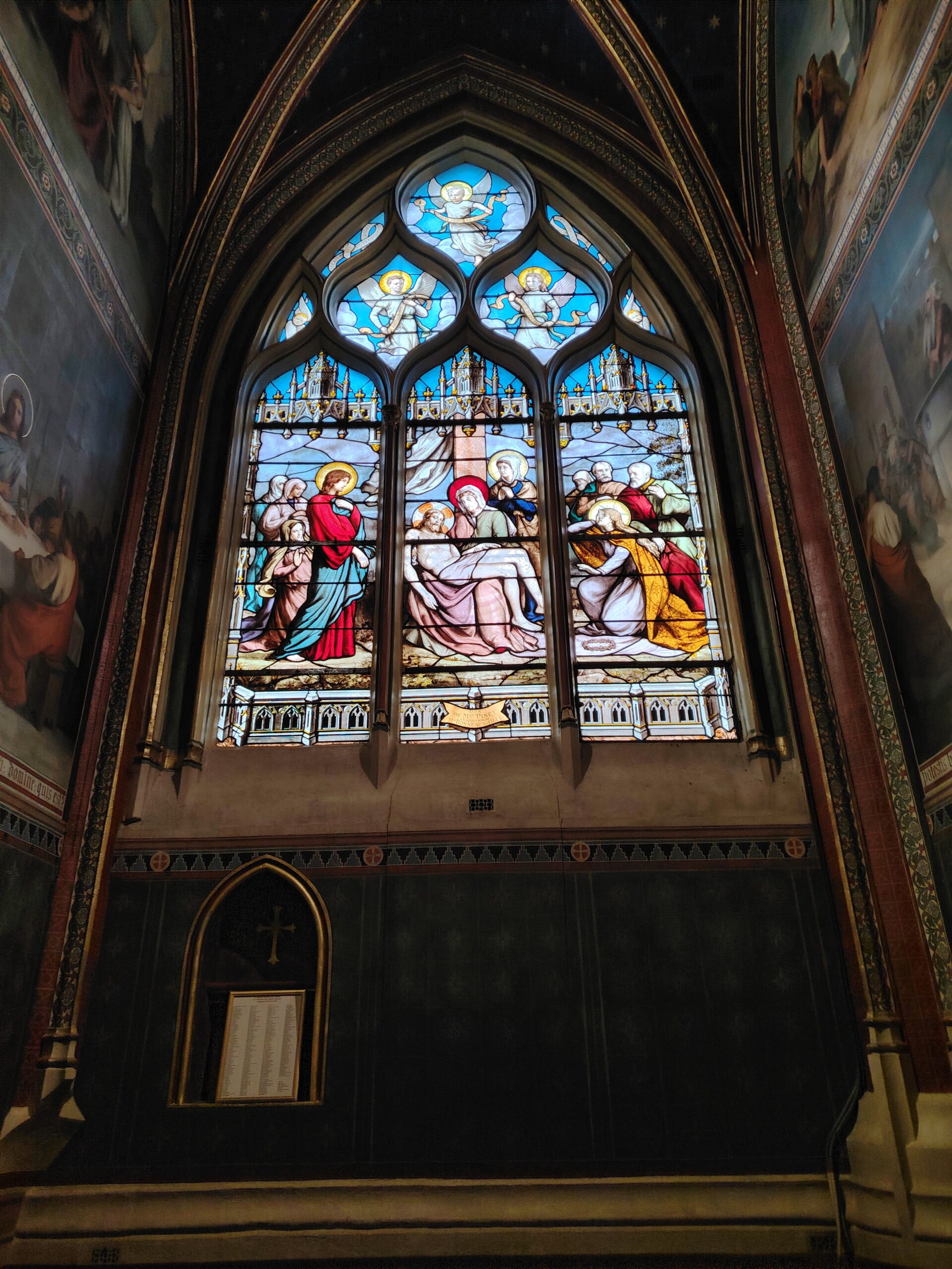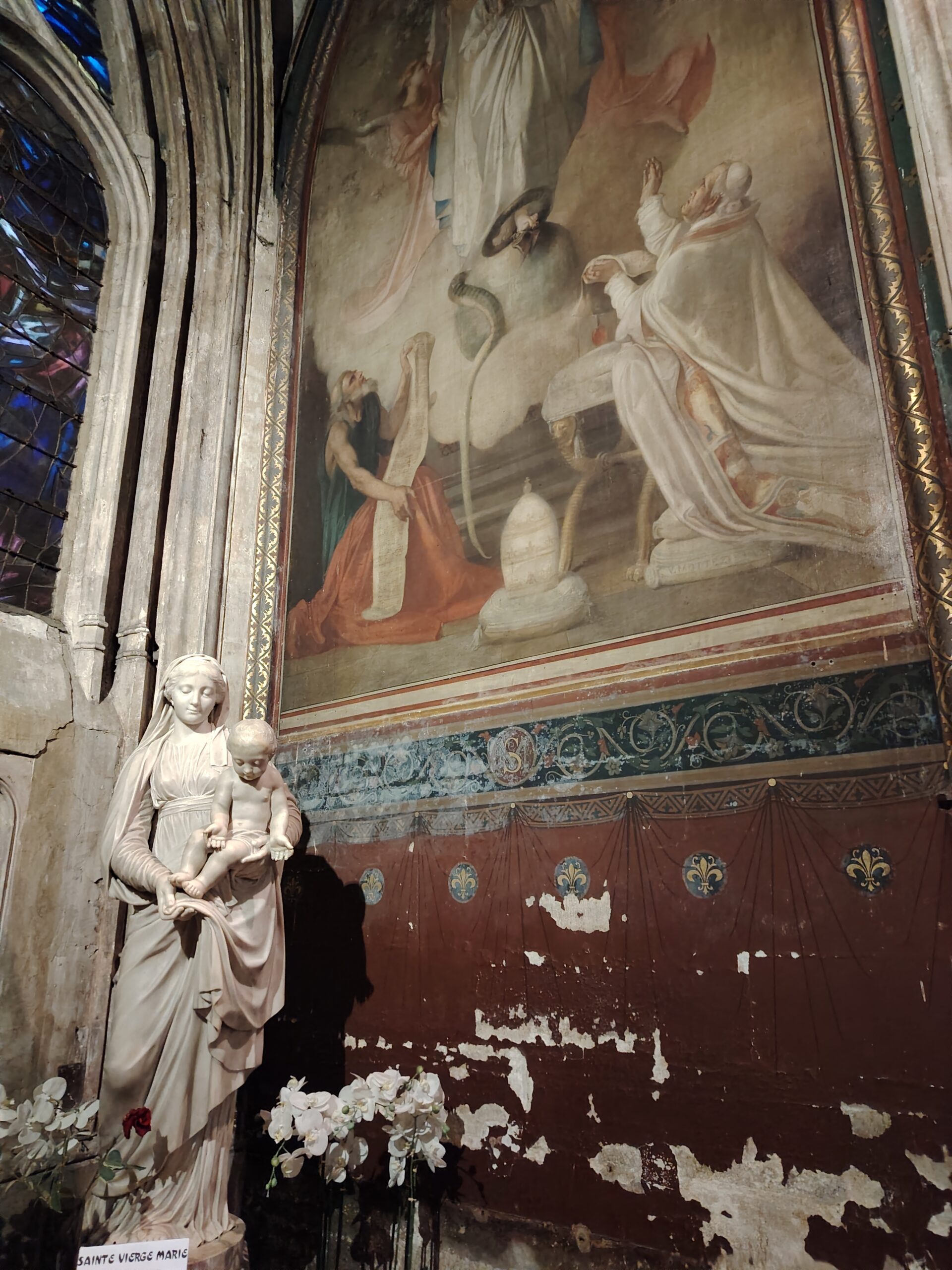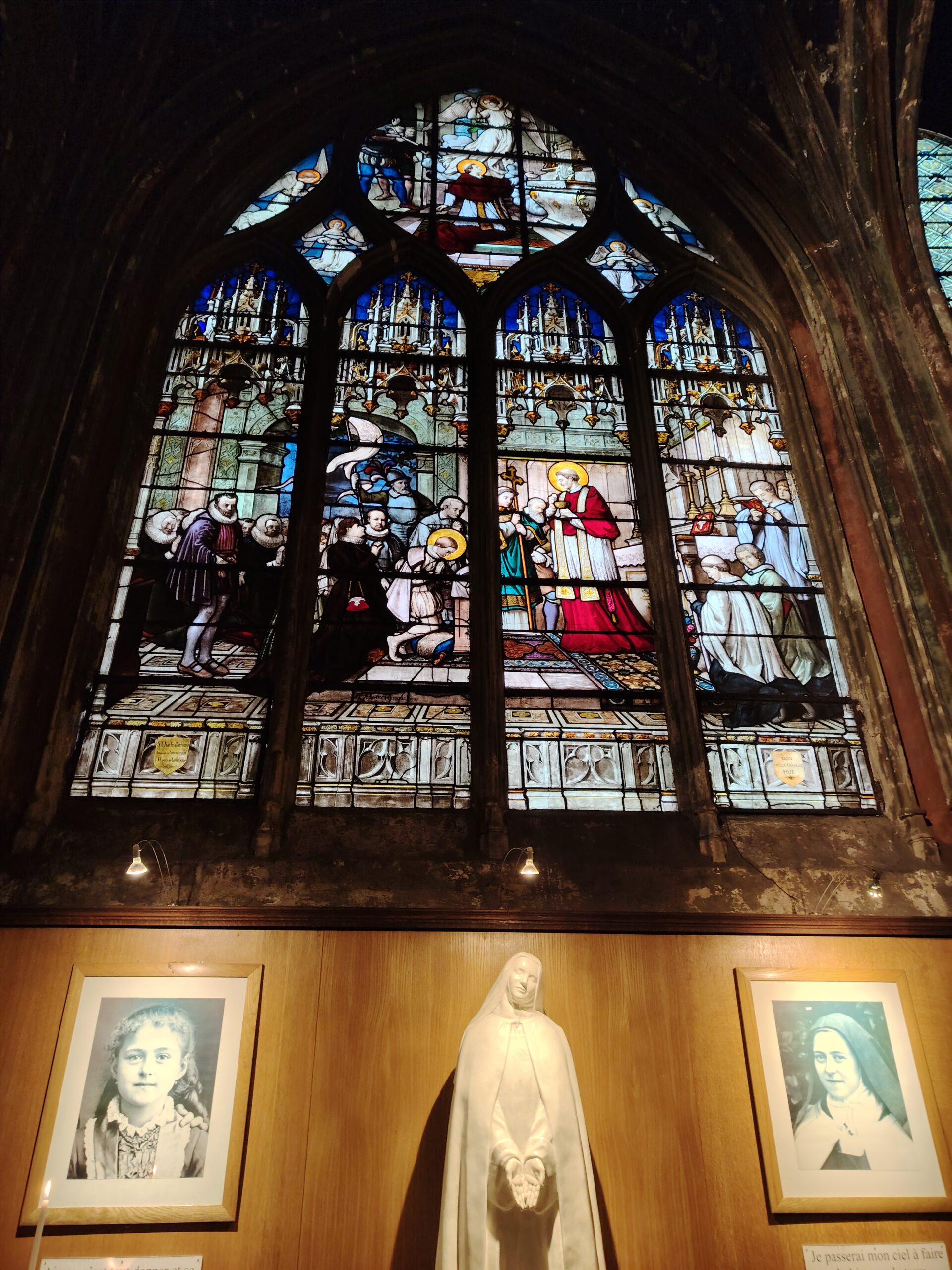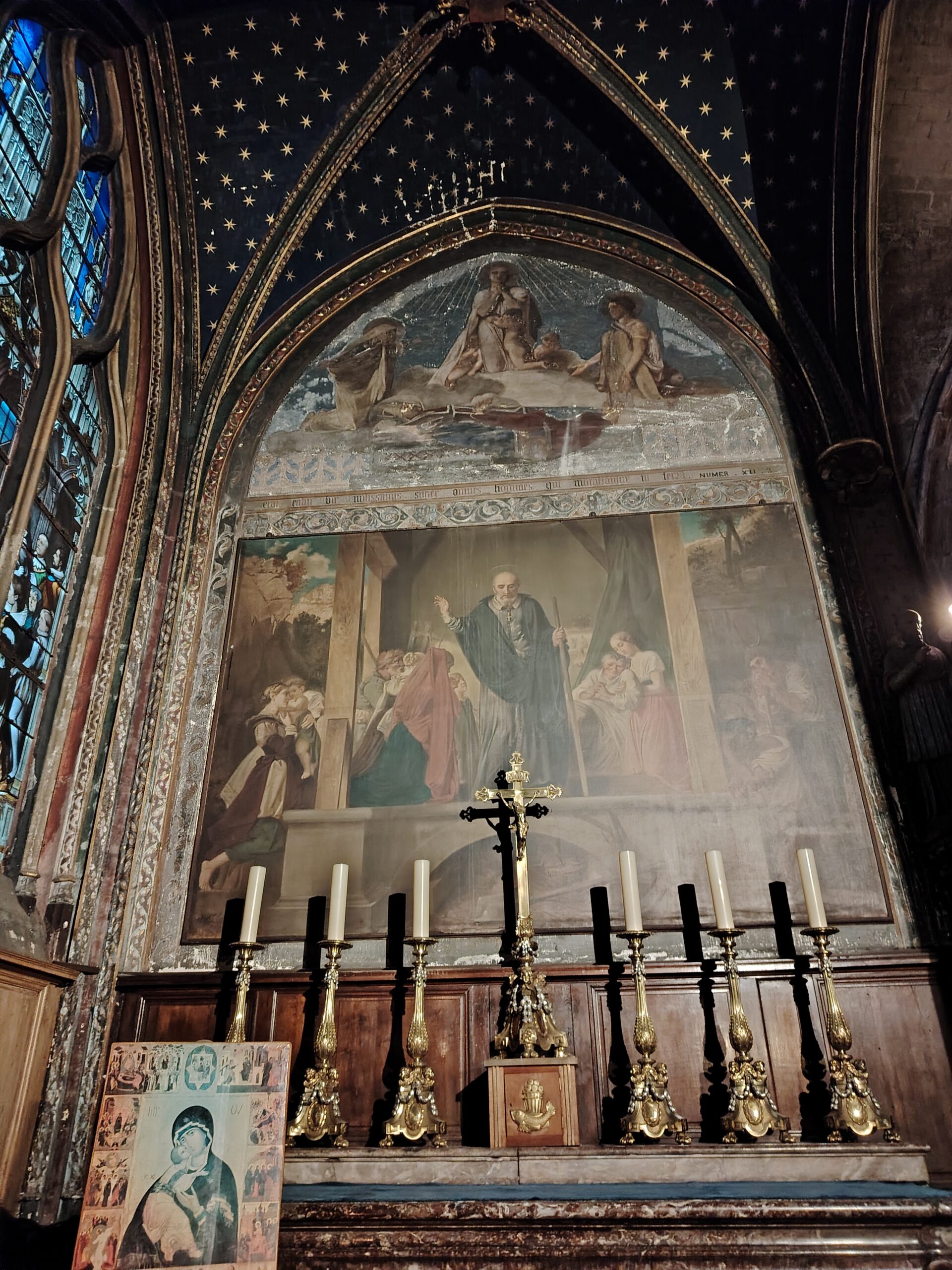 Church of Saint Séverin Leave a Comment / Uncategorized / By admin The Church of Saint-Séverin is located in the 5th arrondissement. The closest metro station are Saint Michel and Cluny La Sorbonne. Saint Michel ;Metro line 4 and RER B Cluny La Sorbonne; metro 10, RER B and RER C. The church was constructed beginning in 1230 and rebuilt and enlarged in the 15th to 17th centuries. The nave. The altar and the windows of the apse with the portraits of the Saints. The Grand Organ. . The Choir Organ. . . . Cloister and garden.Former Ossuary or Charnel House from the 15th century.