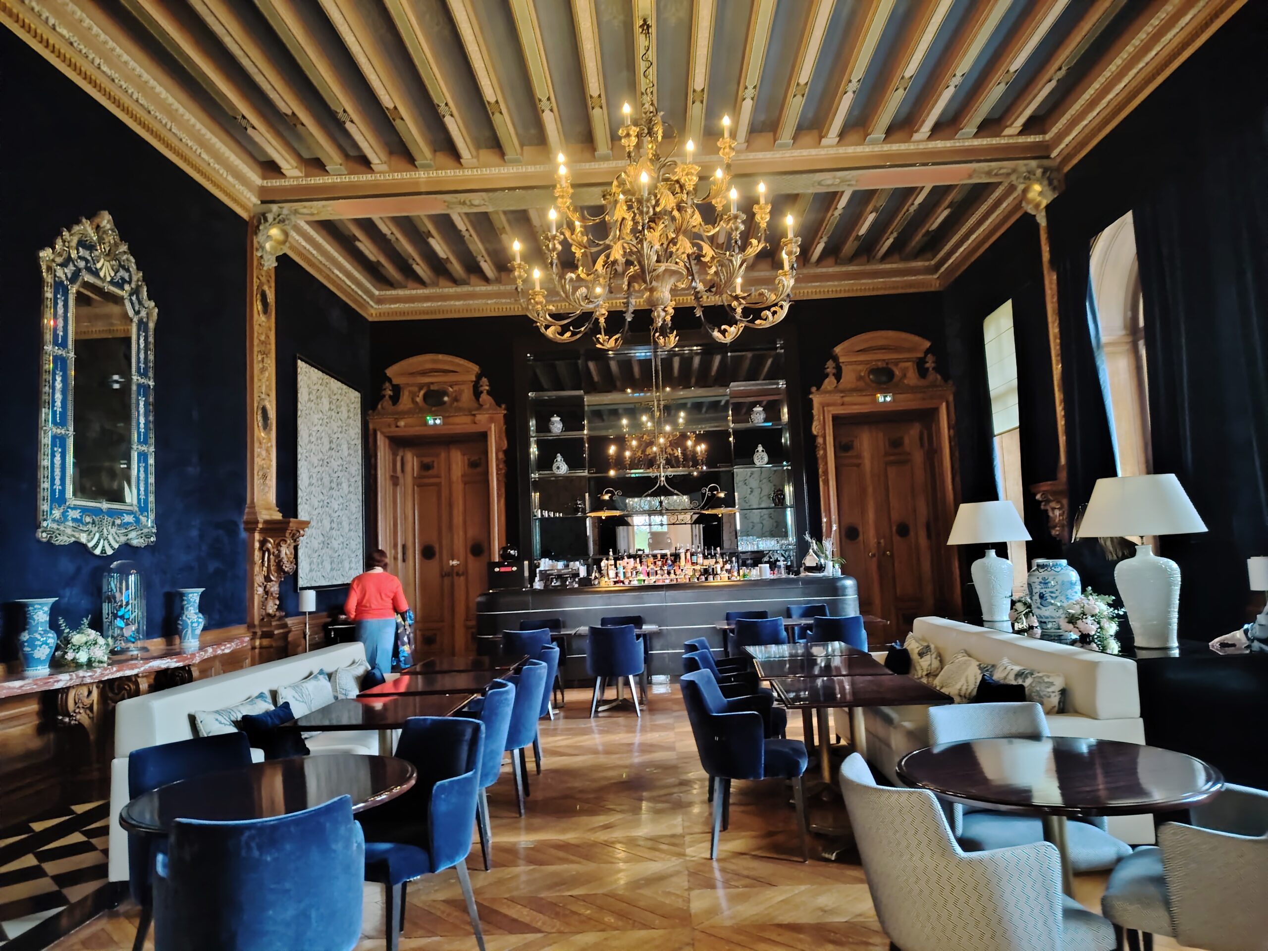 Formerly the reception hall of Château de Ferrières, the Salon Bleu boasts sumptuous Louis XVI-style