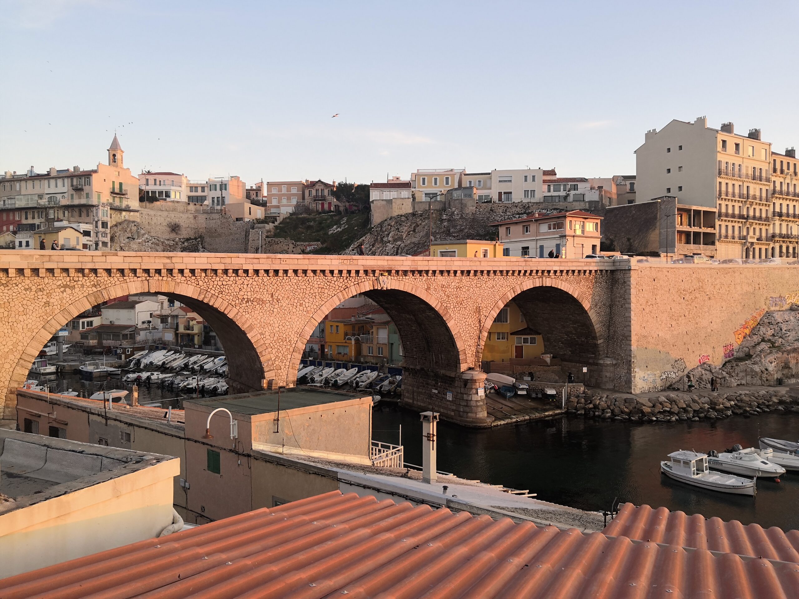 Sitting on the terrace, on the rocks or overlooking the small fishing port of the Vallon des Auffes, you can enjoy an exceptional sunset in the picturesque atmosphere of the district.